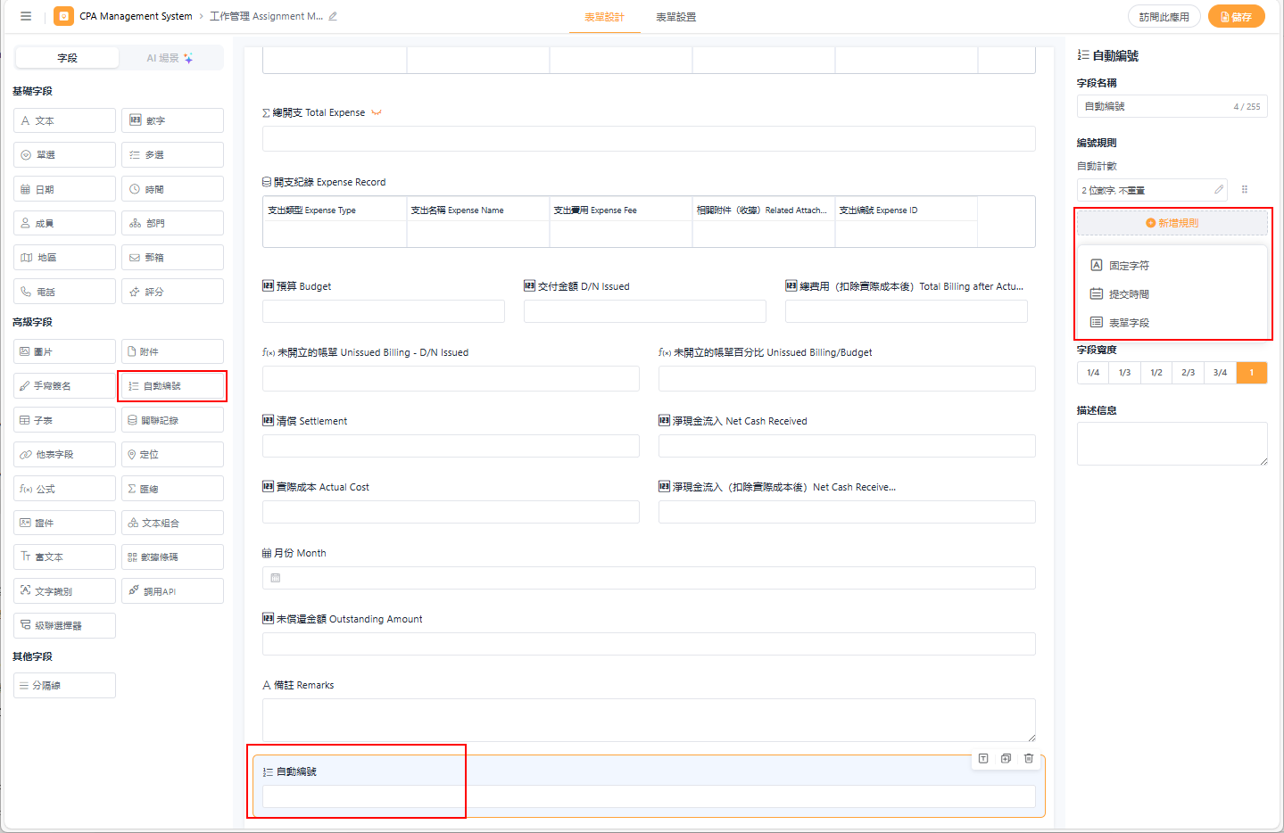 自动编号字段用于为每一条新记录自动生成一个格式化的唯一标识符(流水号),例如:PO-20231027-0001。