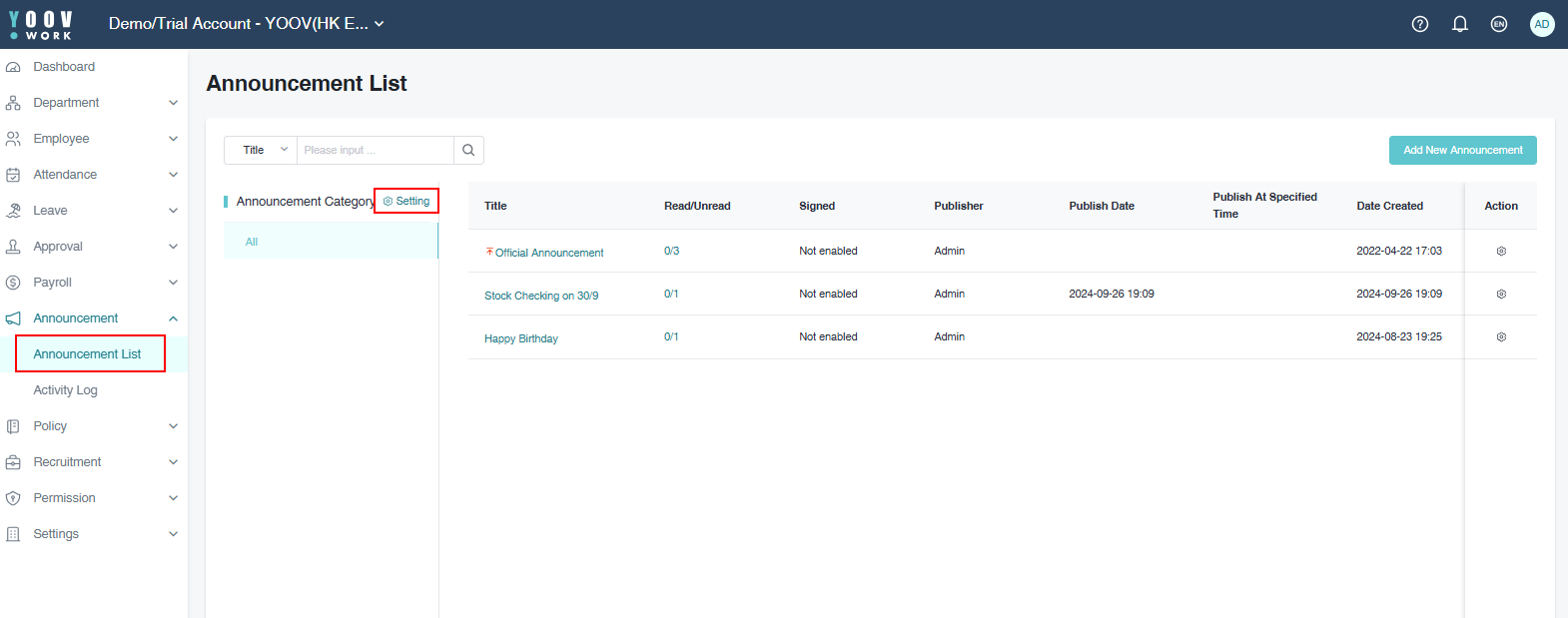 ## 2. Add Announcement Category