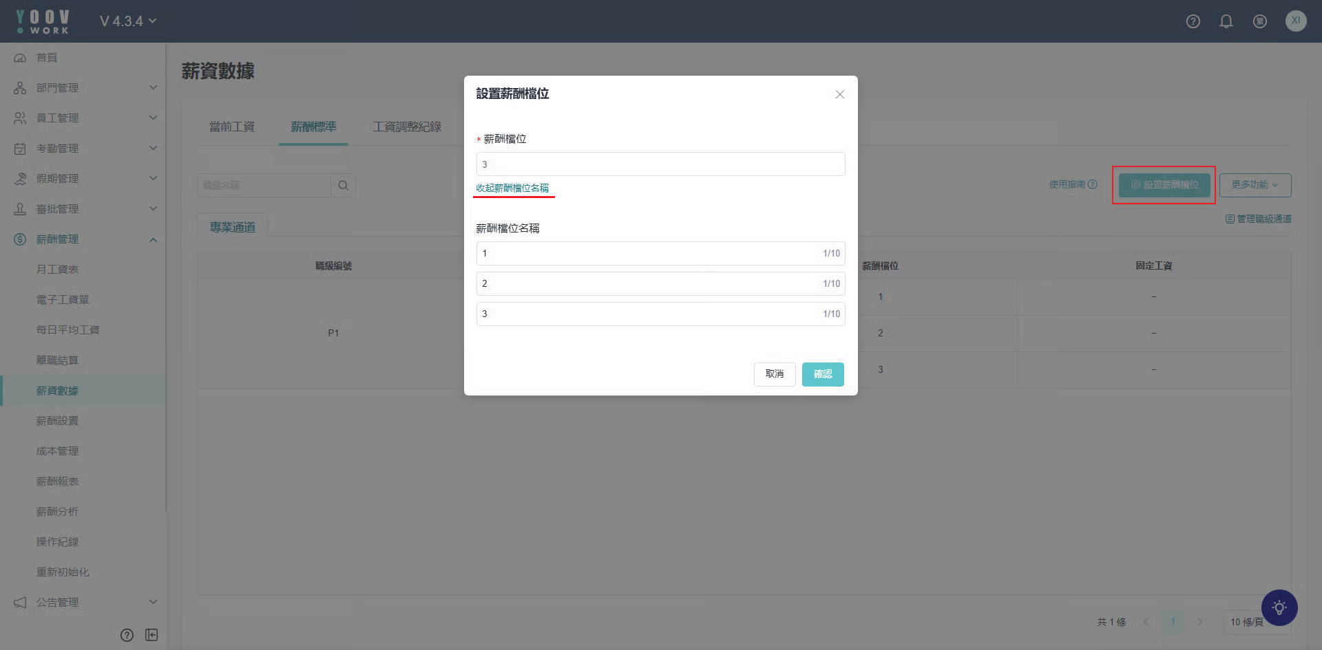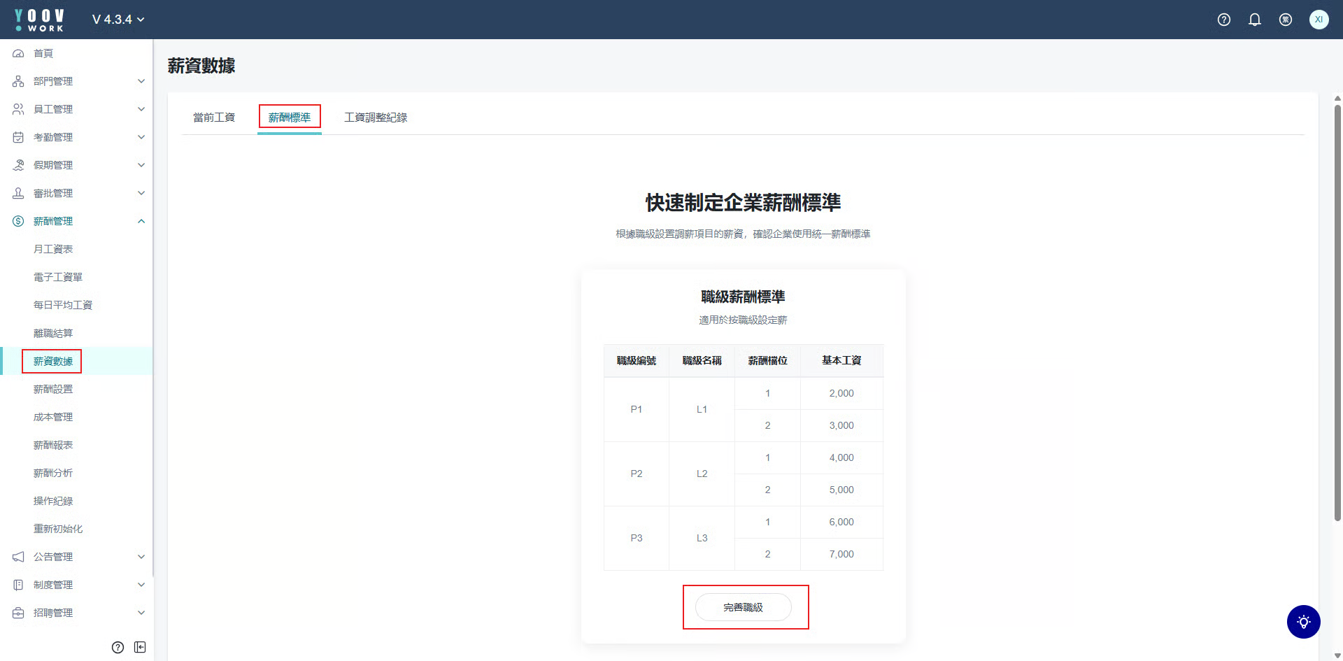 系统内有两个位置可以设置职级: 1. [职级管理]入口 / 2. [薪酬管理]入口