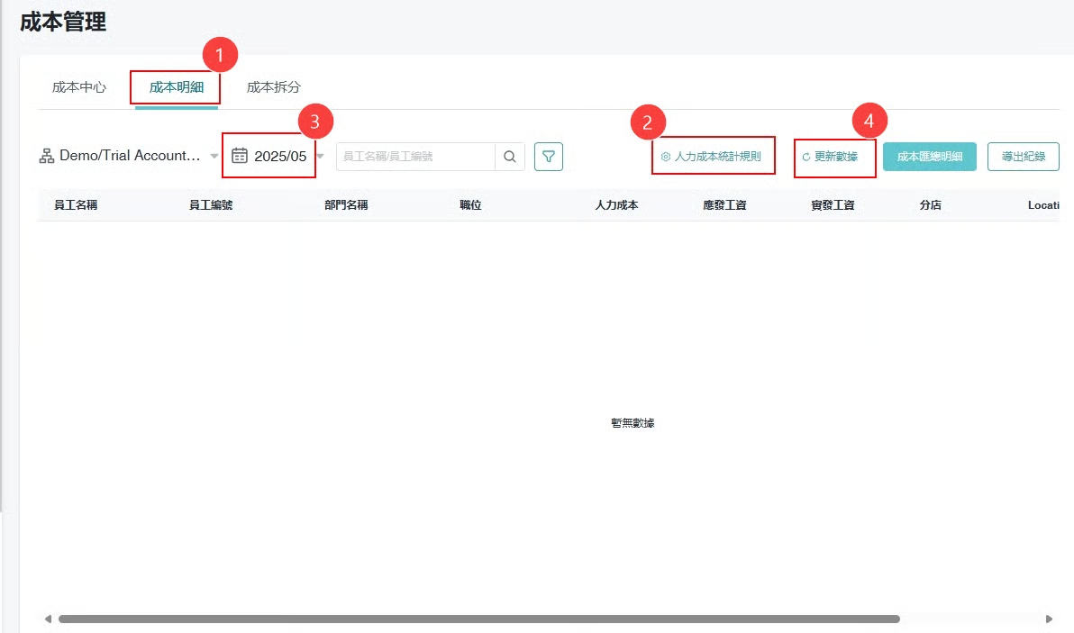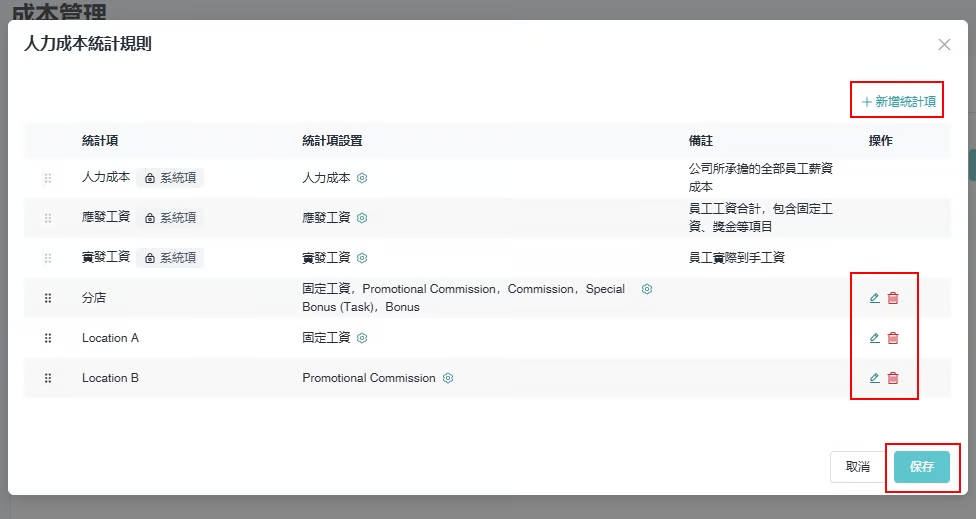 ② 如果成本统计栏位不满足需求，可于 "人力成本统计规则" 进行新增，之后数据会自动同步更新。\