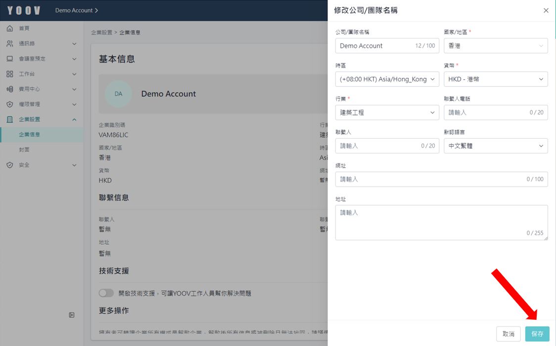 2.填上资料后按 「保存」，公司／团队资料便会自动更新。如果未来公司资料有任何变动         都可以在此修改。 \