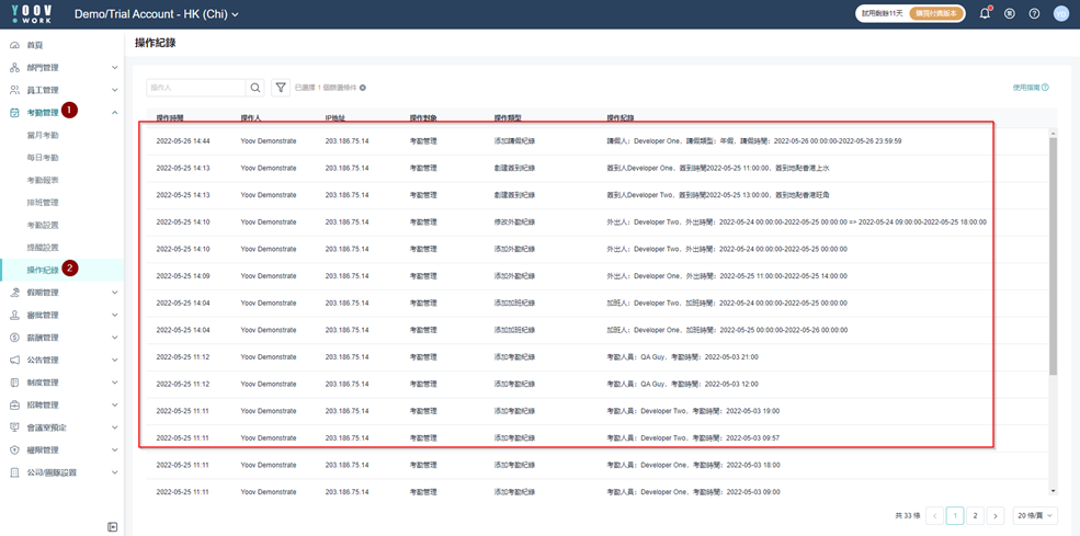 * 基于系统可以让多于一名管理员操作，管理员可以在操作纪录中寻找所有管理员的改动纪录。 详细检示操作时间、管理员名称、IP 地址、操作对象、类型以及具体操作，方便查询。