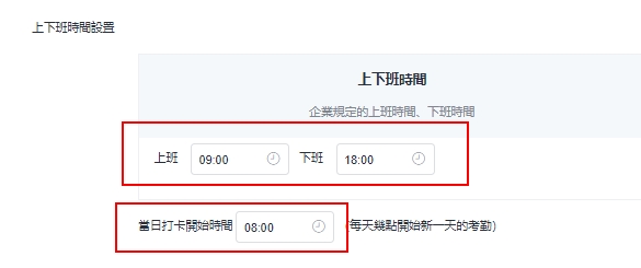 如需再仔细一点,可开启 「打卡时段设置」 ,设定员工上下班的打卡有效时间。