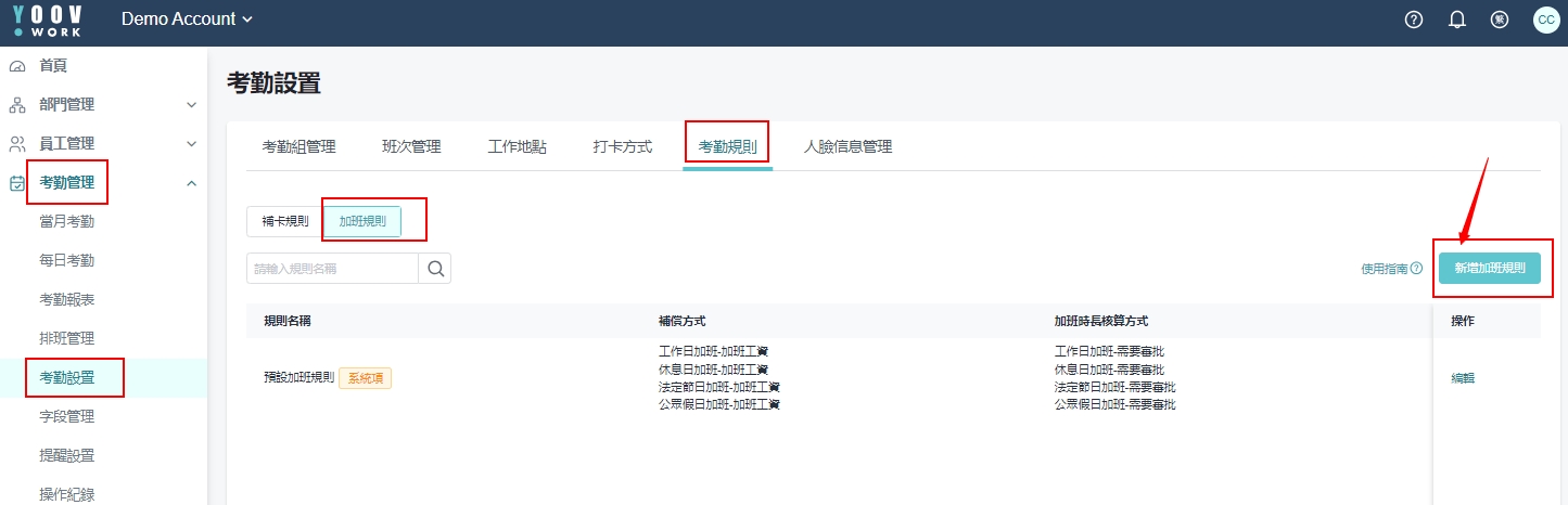 (详细规则设定请阅参巧 - 3.2 加班规则设定说明)