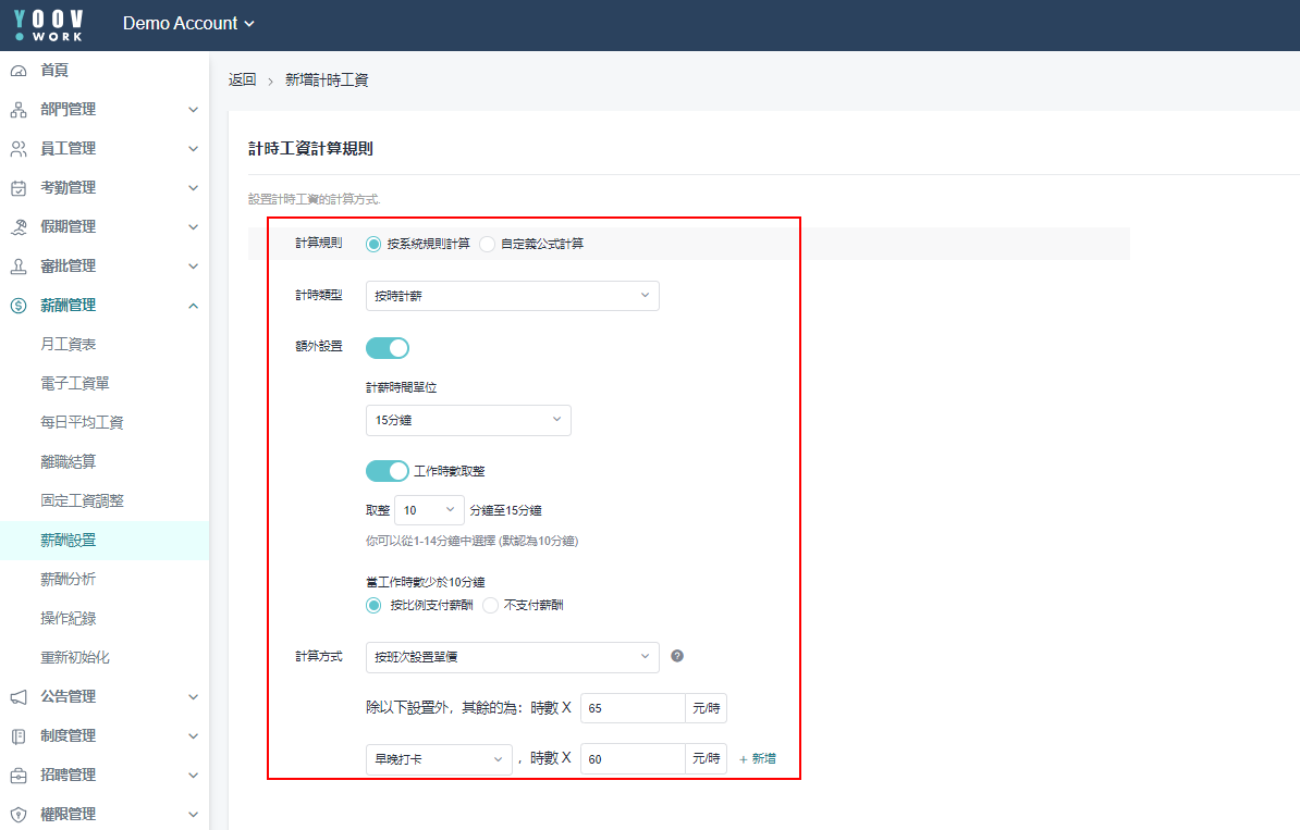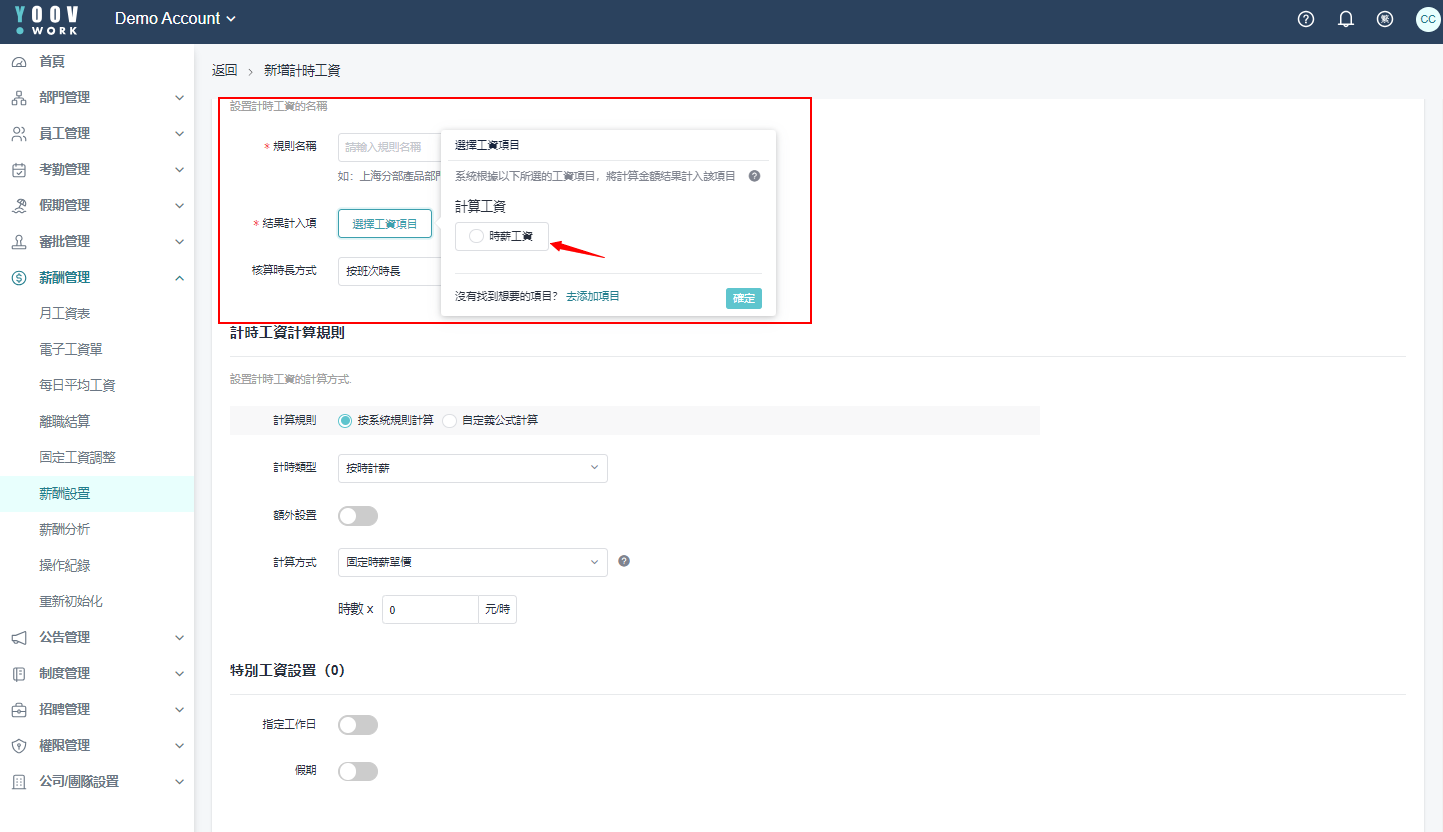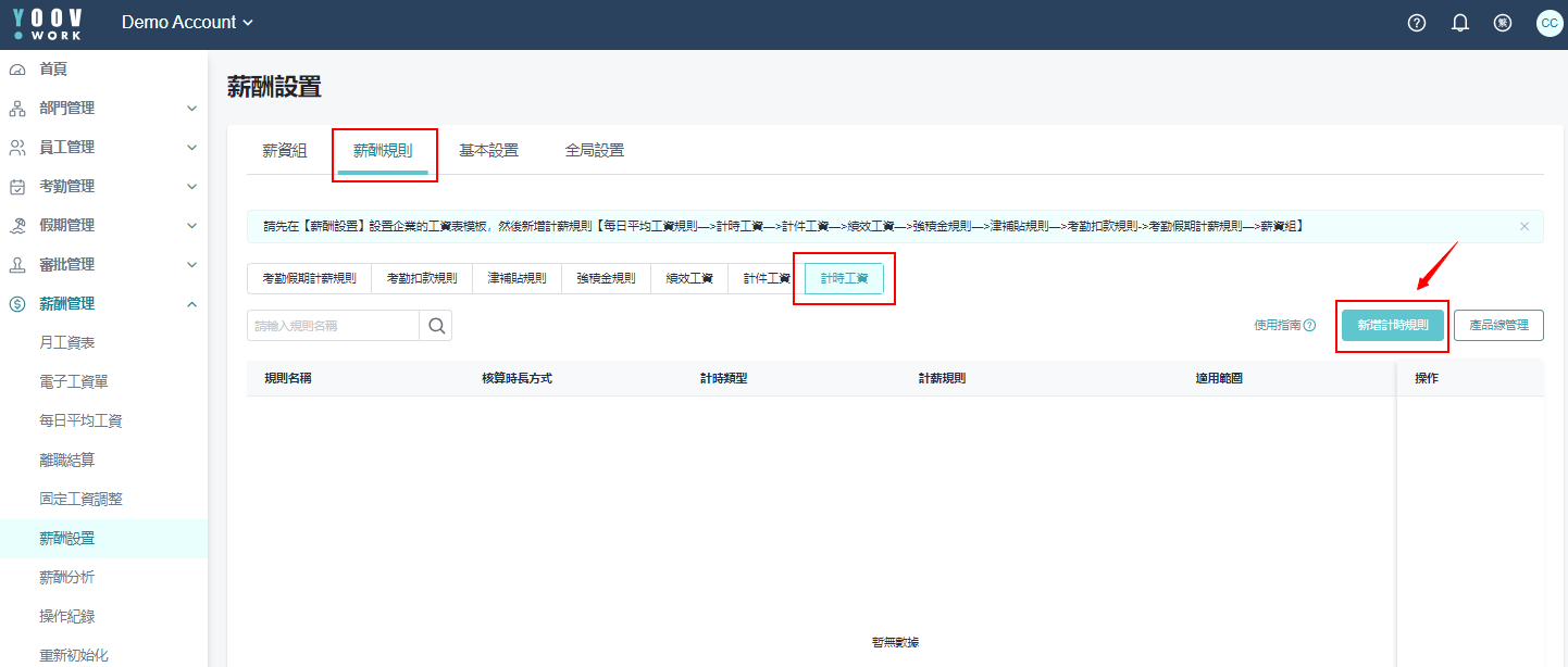 * 如有时薪/日薪员工，请在 「计时薪资」 内新增规则。