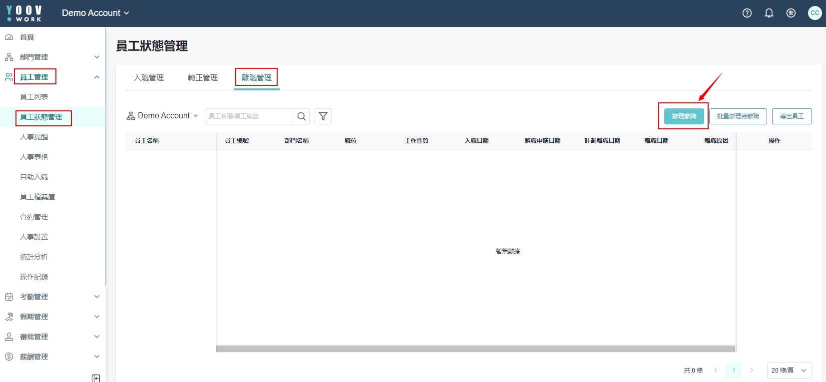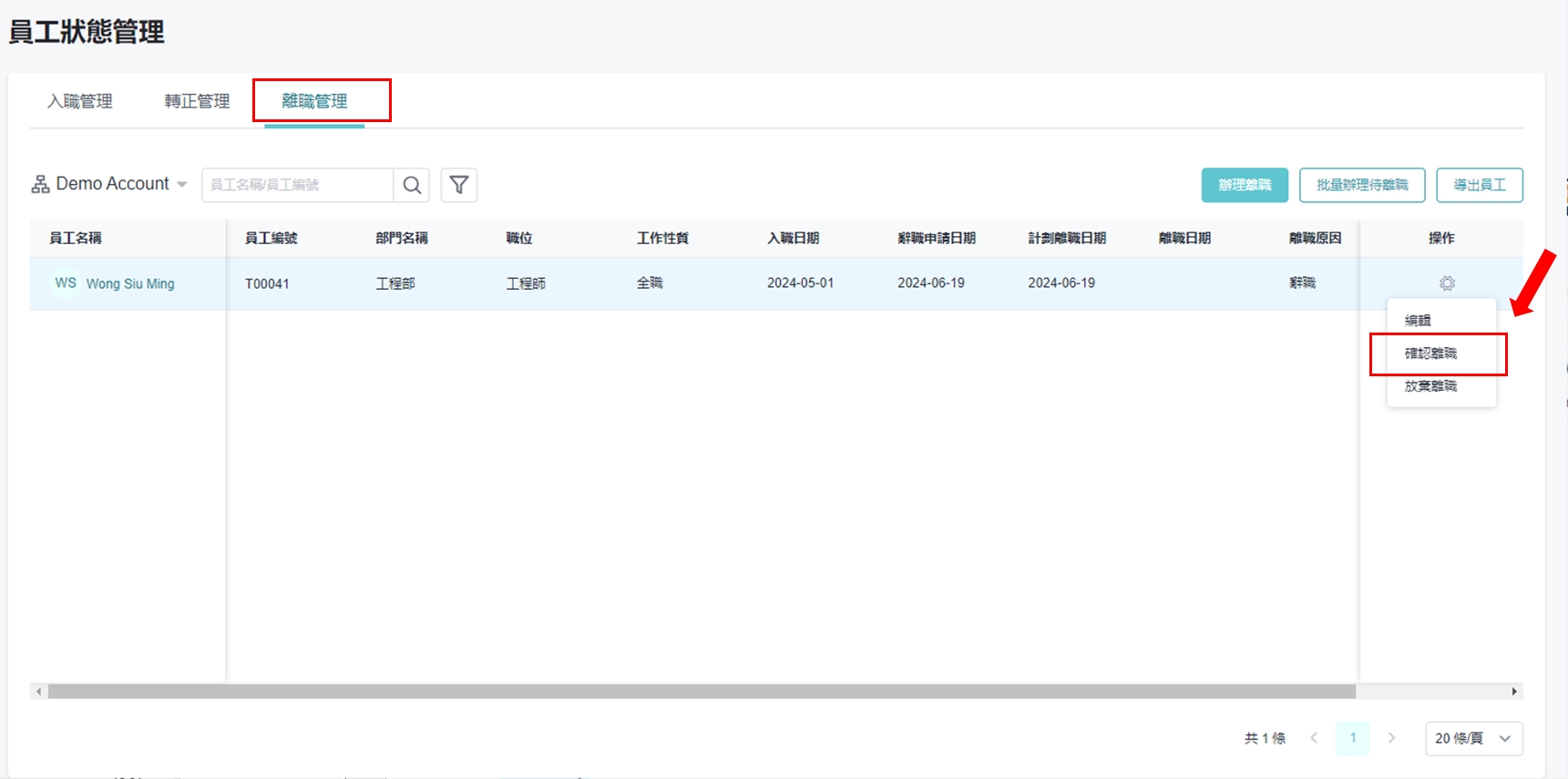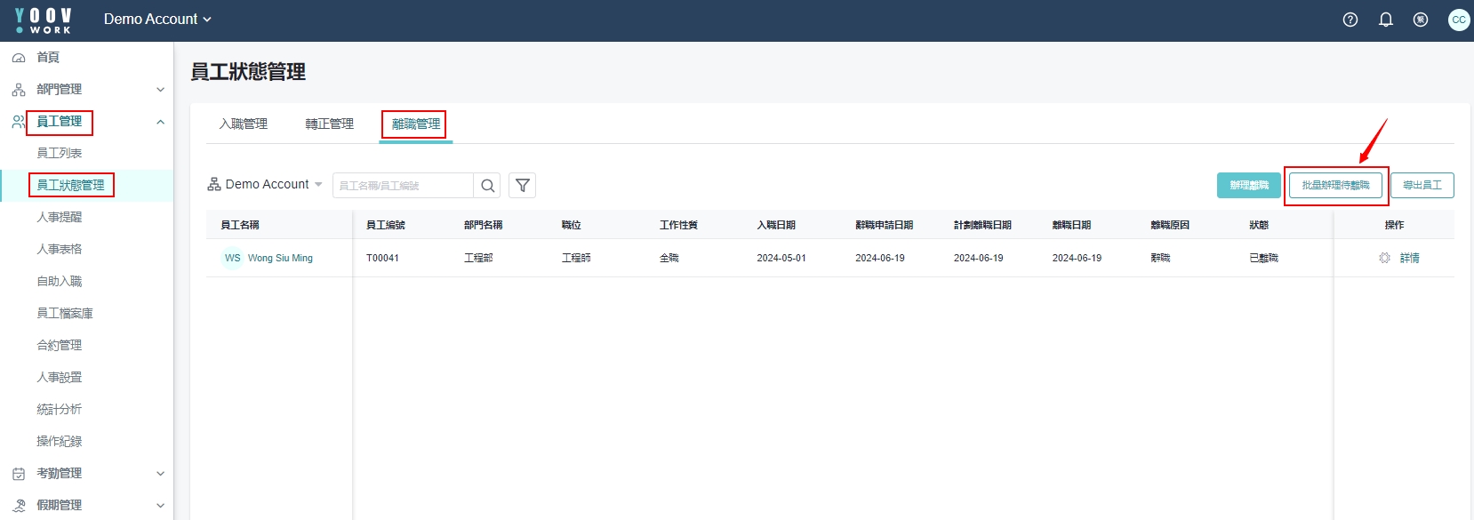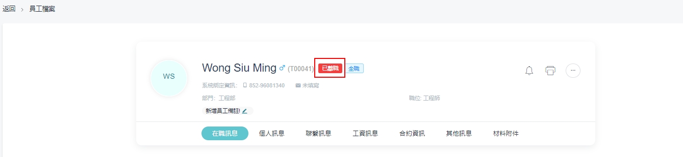 完成后,该批员工档案的状态会显示为 「已离职」 。