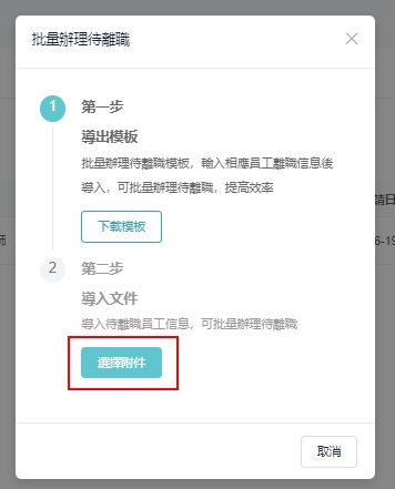 为方便管理员处理较大量离职员工,系统亦能通过办理待离职模板导入离职员工资料。