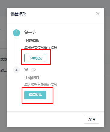 ④ 返回批量导入窗口，点选 「选择附件」，上传即可完成修改