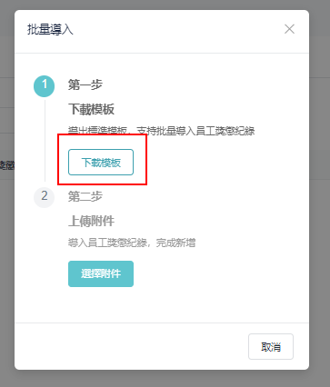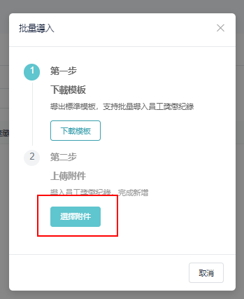 ④ 返回批量导入窗口，点选 「选择附件」，上传即可完成新增 \
