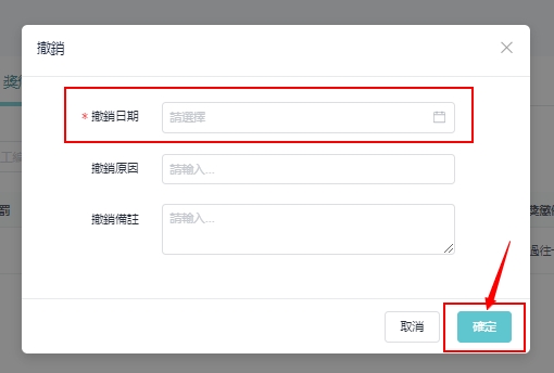 在撤销视窗中,选择撤销日期,输入撤销原因、备注,点选 「确定」