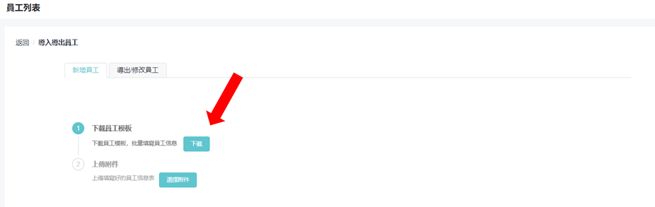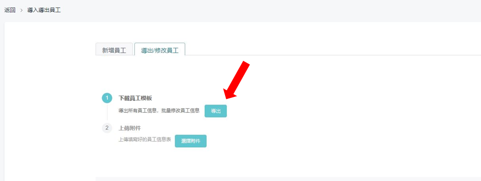 3.如在已有员工下再添加新员工,亦可选择 「导出/修改员工」, 「下载员工模板」 内添加或修改员工资料。
