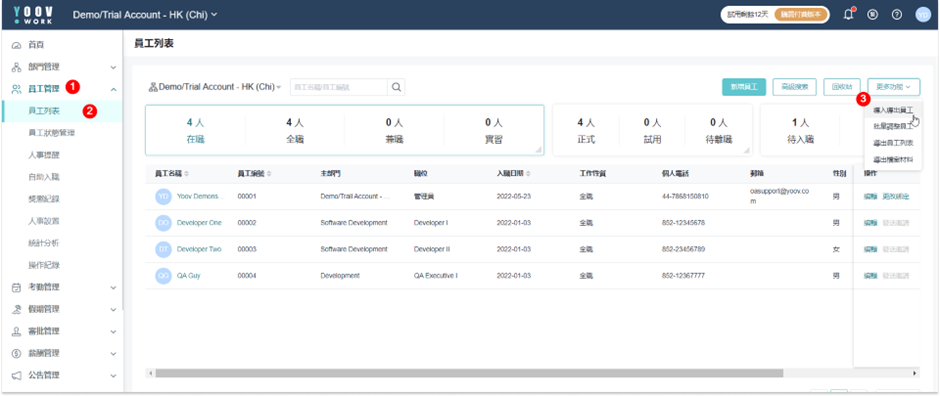5.上载成功后,管理员将能在 「员工管理」 的 「员工列表」 中,看到已新增员工的资料。