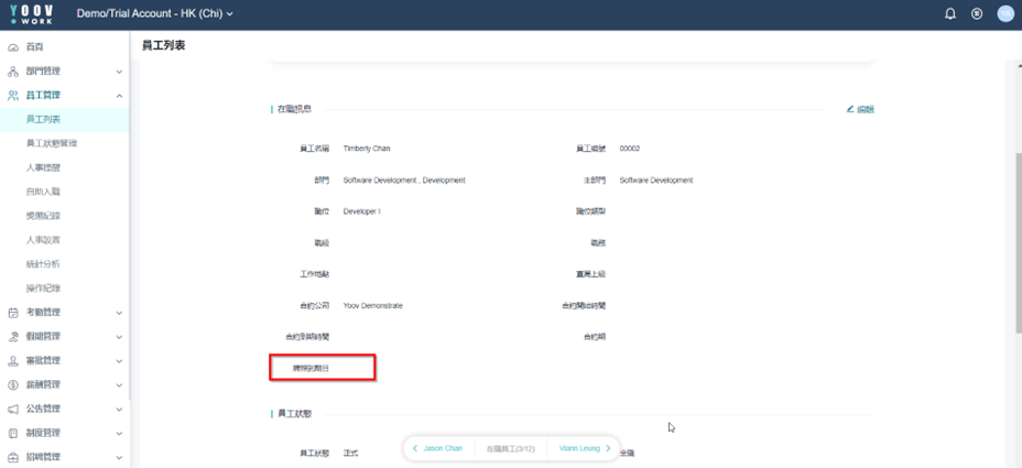 ④ 刚刚新增的栏位可以在员工的档案内见到,同时会在新增员工的导入表中显示。