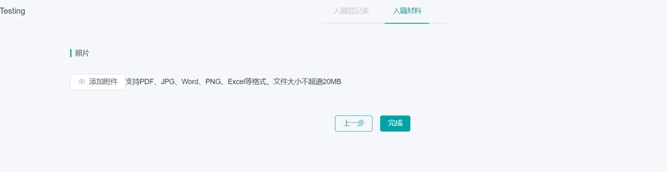 1.进入入职登记表链接,入职者填写手机号码,进入入职登记表填写页面 2.入职者填写入职登记表资讯以及上传入入职资料 3.填写相应的资料后,按[下一步] 4.上载附件(如有),然后按[完成] 5.成功保存内容后会显示已修改页面