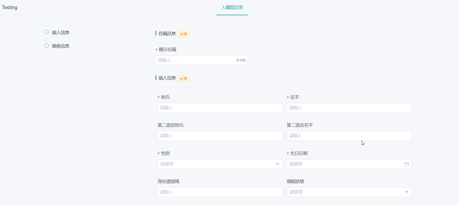 在使用自助入职功能之前,管理员必须先设定好入职登记表。入职登记表可新增多个。