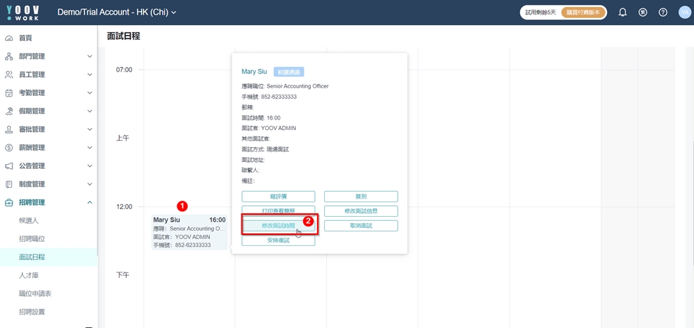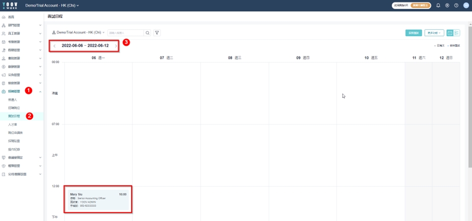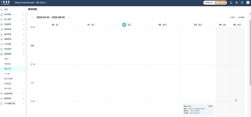 这功能让管理员可轻易查看到已安排的面试日程,或作修改面试的有关安排。